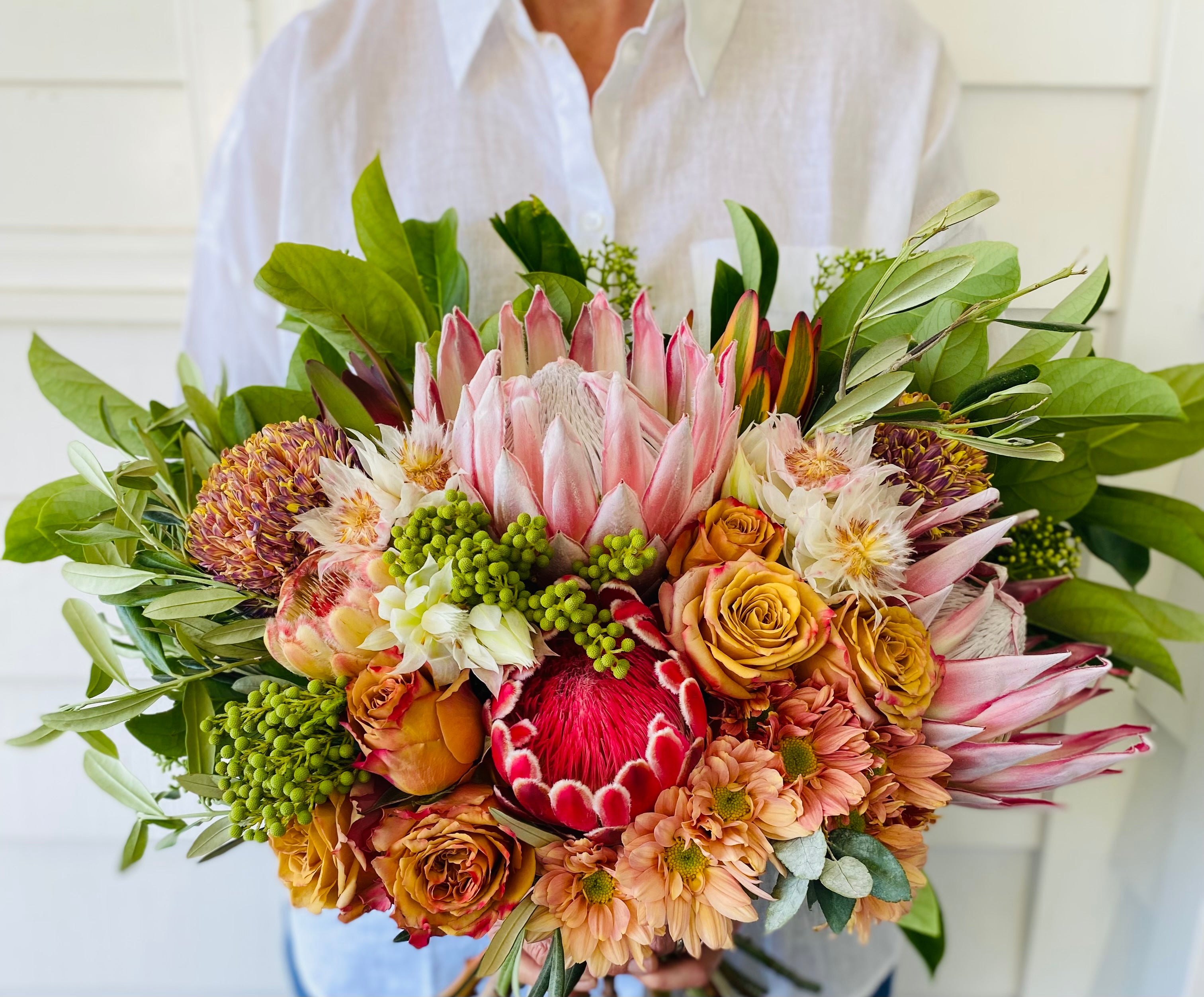 I create daily market posies bursting with mixed blooms, available from Tues to Sat. Each morning, I handpick the freshest, seasonally gorgeous flowers and arrange them with love, wrapped in eco-friendly brown paper and ribbon.