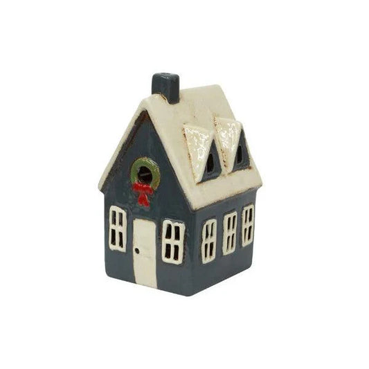 Alsace Tea Light Cottage Navy with Wreath | Christmas Tea Light House FRENCH COUNTRY