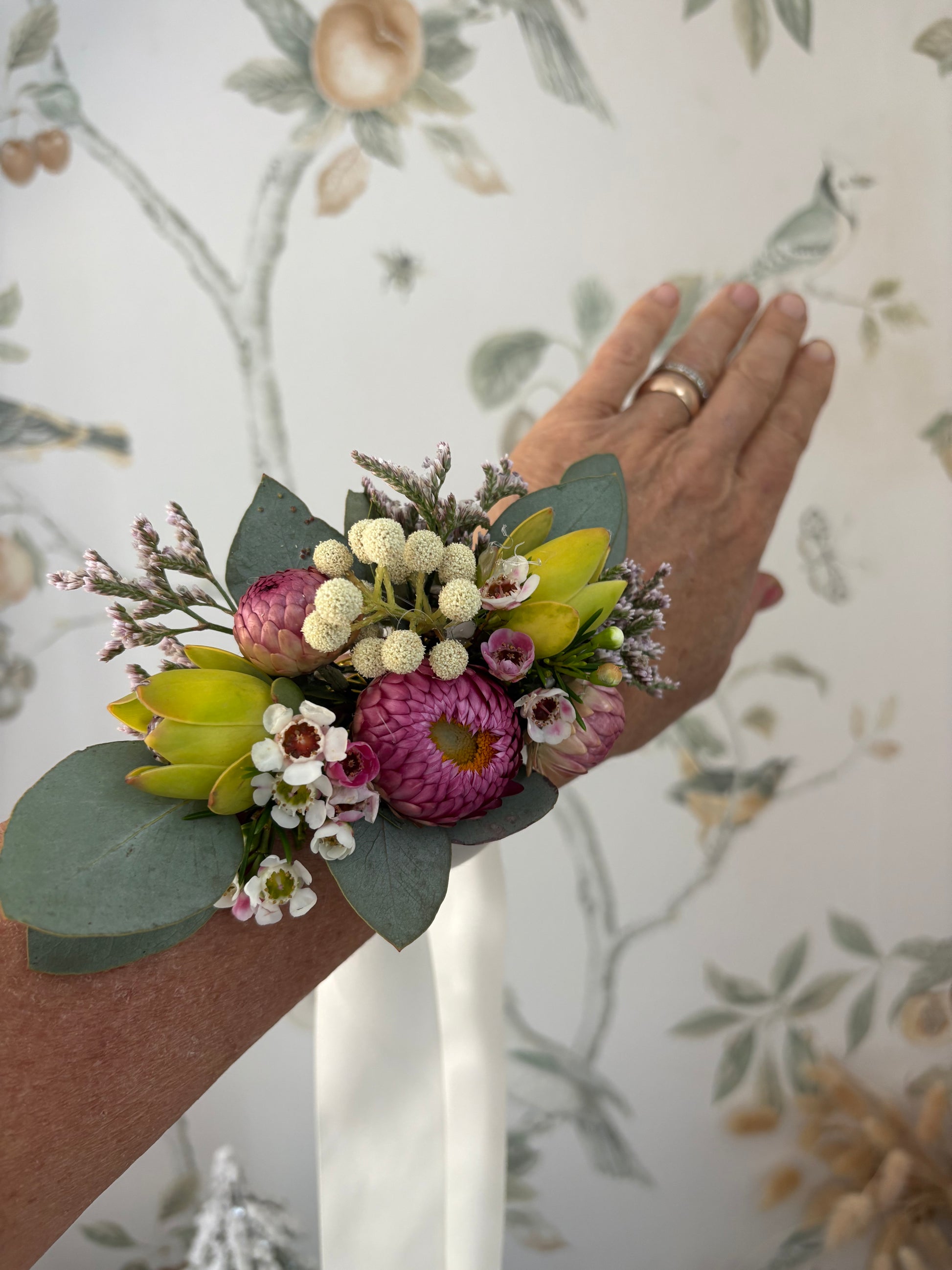 A Corsage is a small bouquet of flowers worn on a woman's dress or worn around her wrist to a formal occasion, traditionally purchased by the woman's date, husband or fiance. Corsages are commonly worn to Perth School Balls, Perth Weddings and Perth Black Tie Corporate Events.